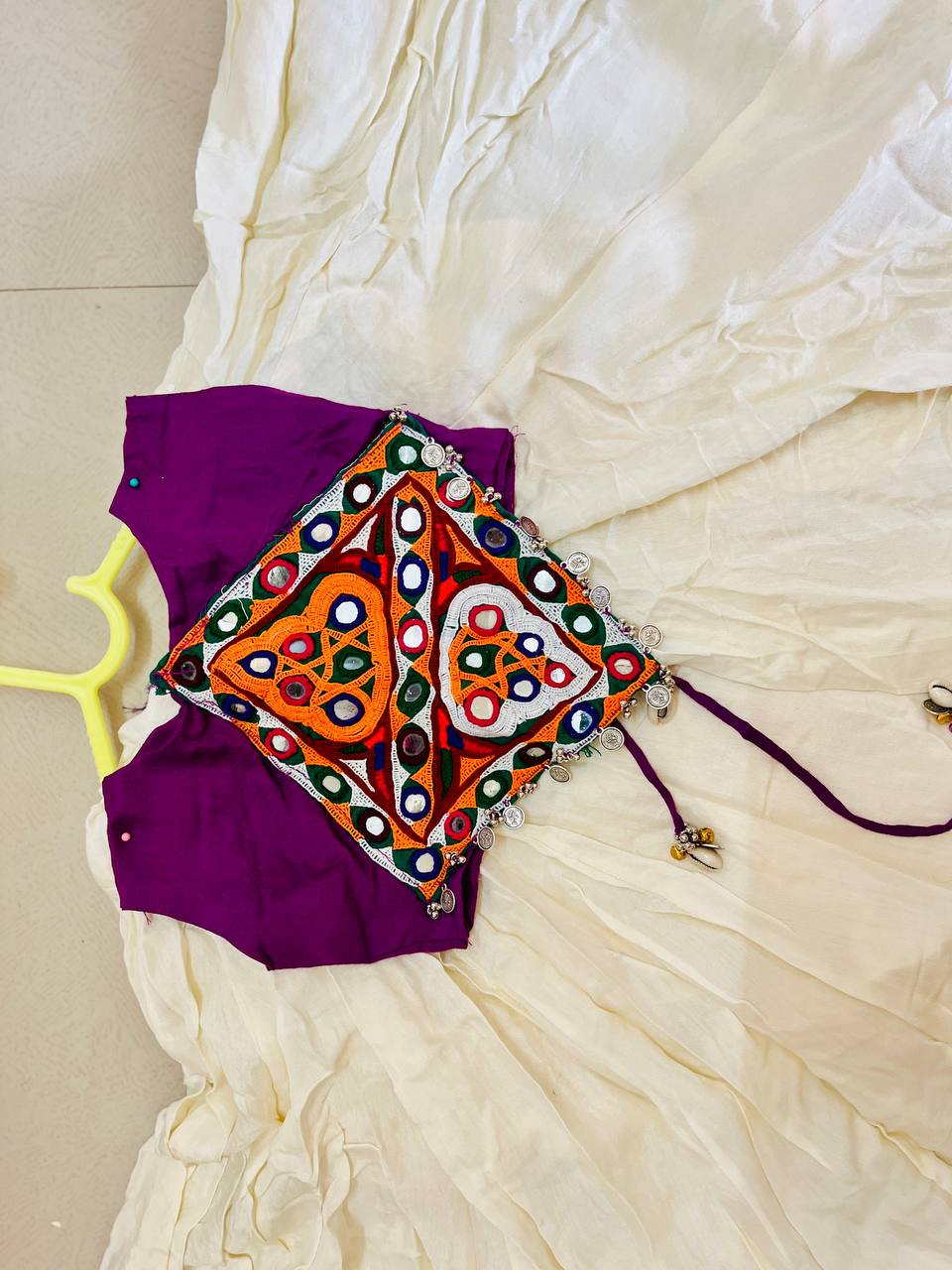 ๐จ Colour: Off-White Chaniya with Purple Blouse (Colour Options Available)